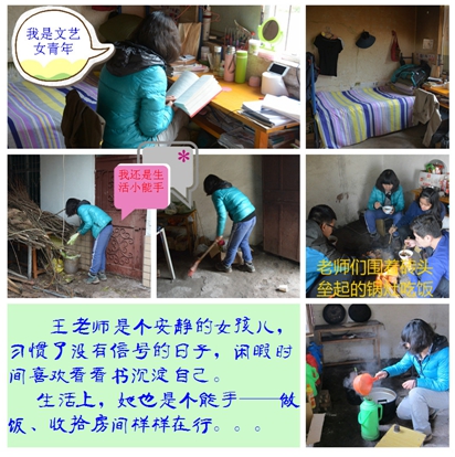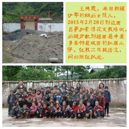 王艳霞,来自新疆伊犁的88后女孩儿,2015年2月28日到达西昌参加索玛花支教培训,后被分配到越西县申果乡红旗小学任教二年级语文课程并担任队长。王老师是个安静的女孩儿,习惯了没有信号的日子,闲暇时间喜欢看看书沉淀自己。