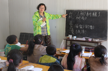 正在给孩子们上课的罗老师,多样的讲课方式使得课堂上的学习气氛更加有趣,孩子们都听得格外认真。