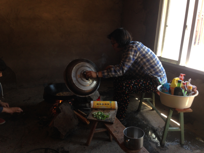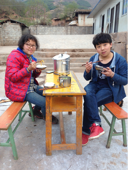 忙碌了很久之后终于做好了!罗老师在院子里吃着自己做的饭,虽然只是如此简单的一餐,但她却吃的很满足。