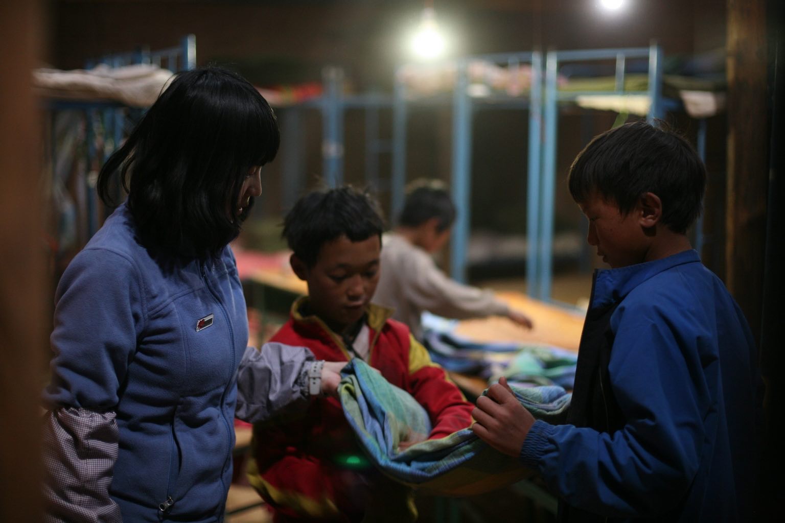 彦瑾同时也担当着生活老师的角色,教孩子们如何整理内务,铺床,叠被子。