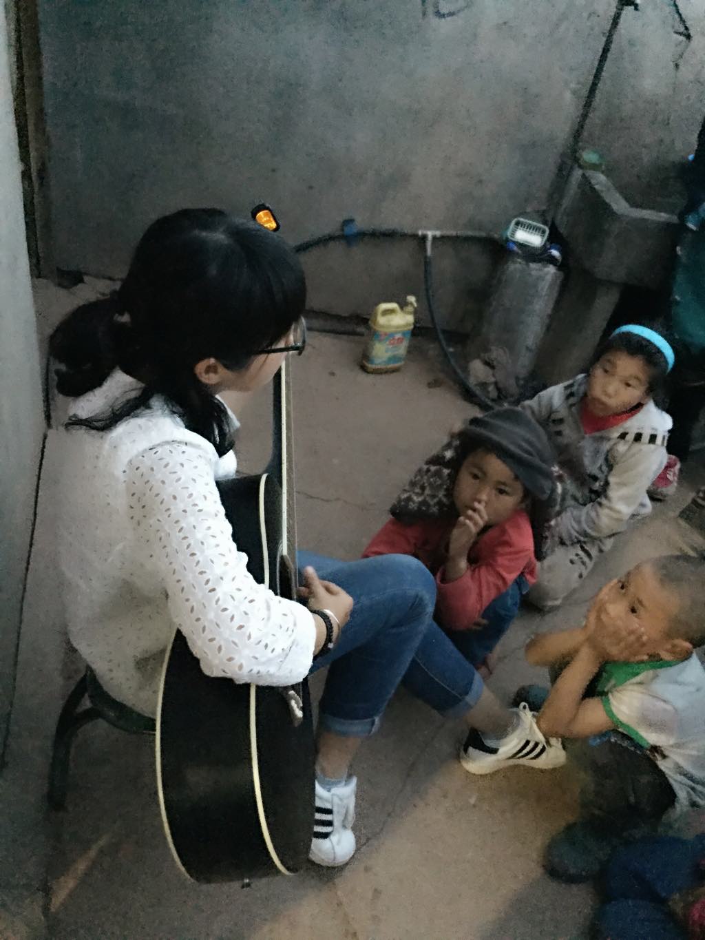 更多的时候她喜欢给孩子们弹吉他、唱歌,丰富他们的课后娱乐生活。