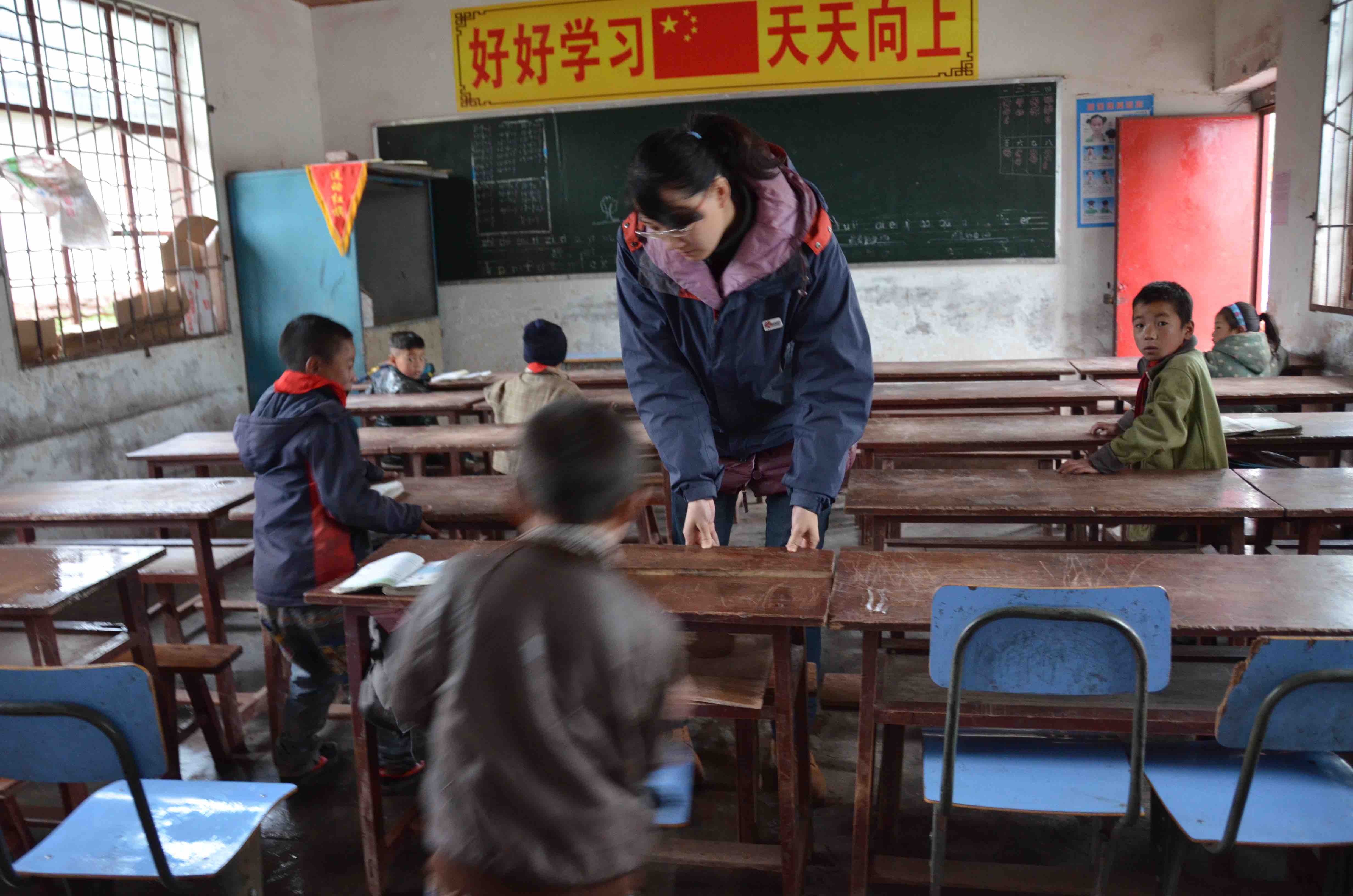 庾志娟,来自广西桂林,于2015年4月2号到四川省索玛慈善基金会培训,4月12日到石门小学,支教是志娟一直都想做的,看到招募支教老师,就果断来了。