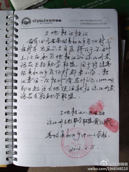 (下图为修建都来小学的土地转让协议)