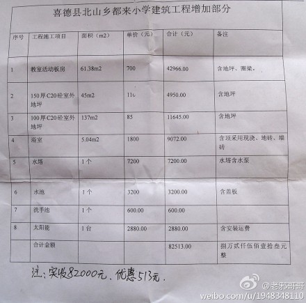 (下图为都来小学建筑工程增加部分清单)