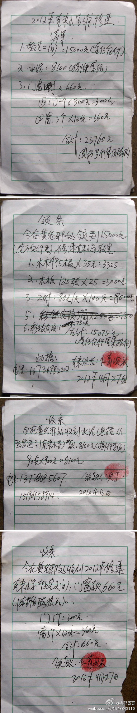 (下图为2011.11.2日收到@翁涛yt 委托@勤奋的光芒 汇来修建克米小学的2.4万元)