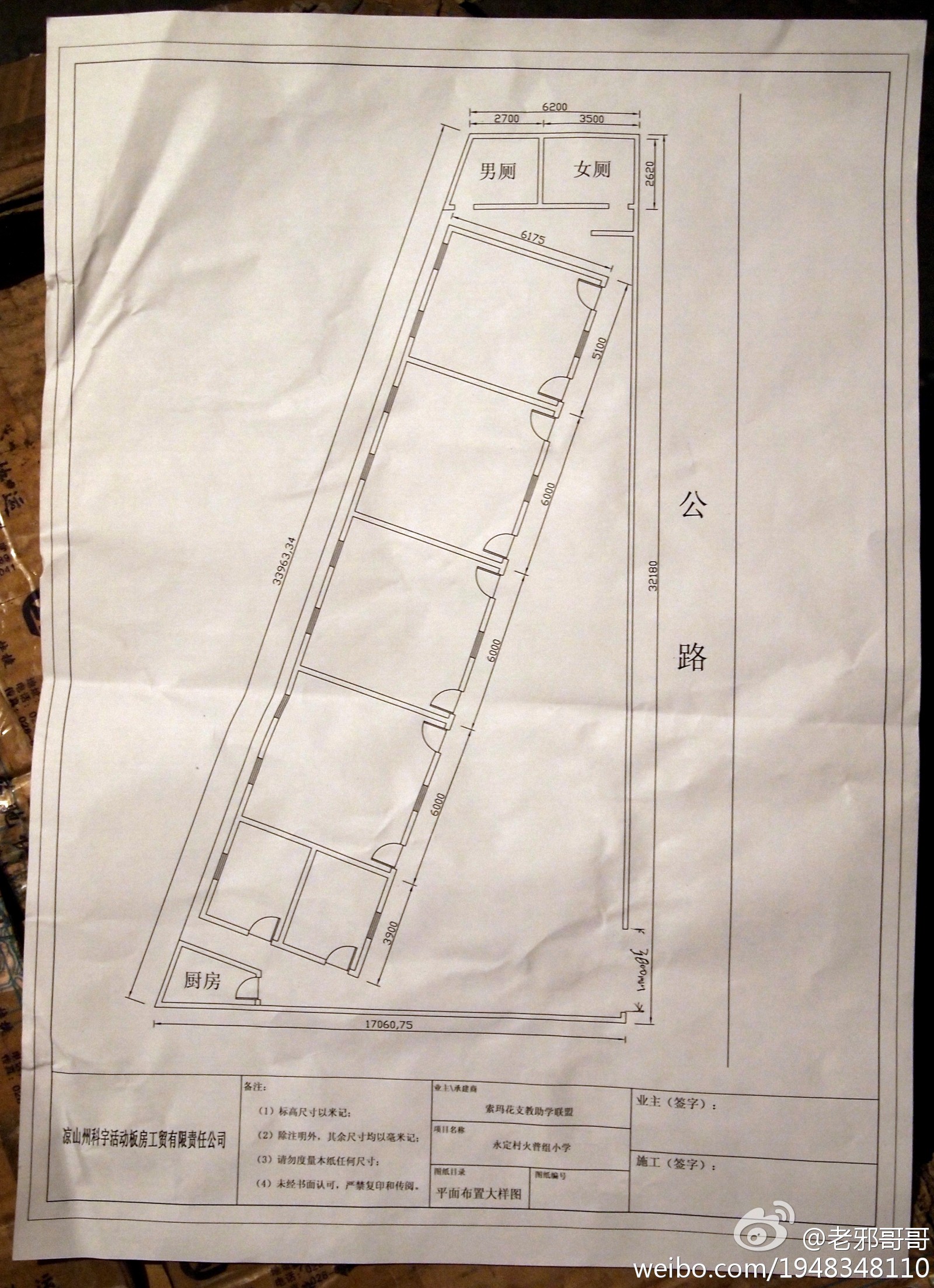 5月29日@花儿honey 从@老邪哥哥的爱心账户取出40448.30元用于支付修建索玛花小学的活动板房的余款,总金额是72448.30元,开工时已经付了3万元,由于门锁的质量问题,扣除2000元,我们自行维修。
