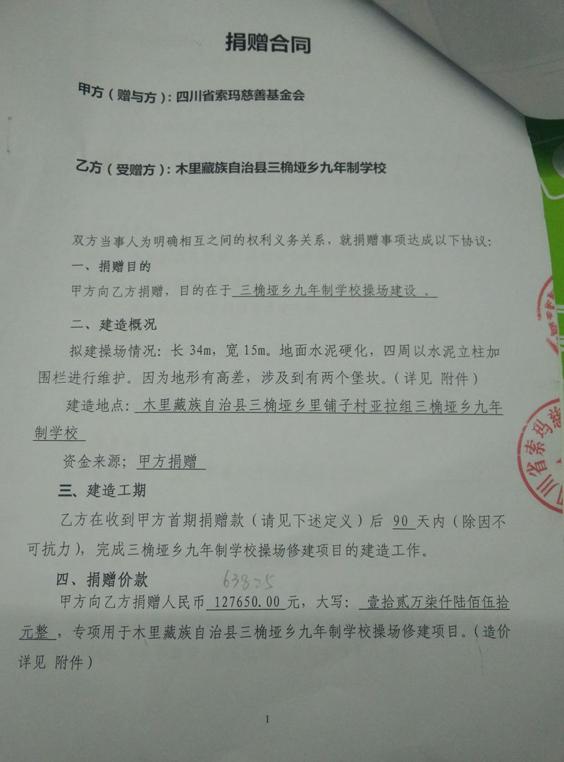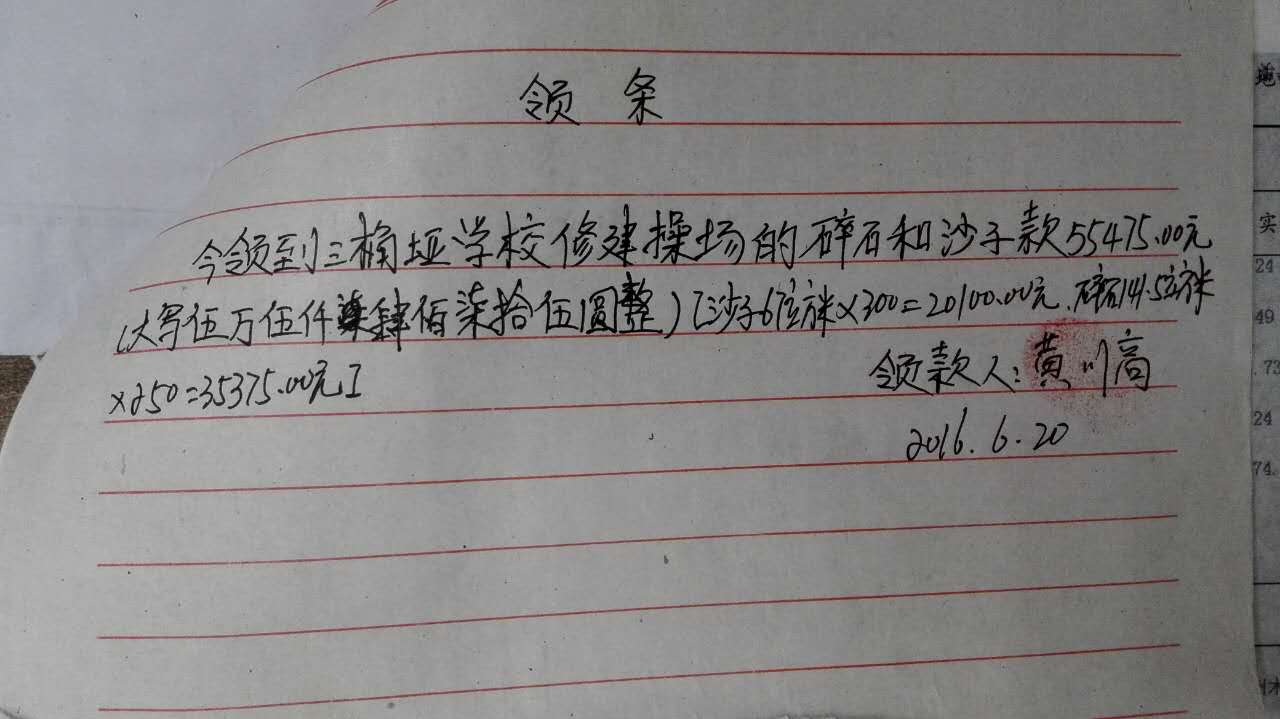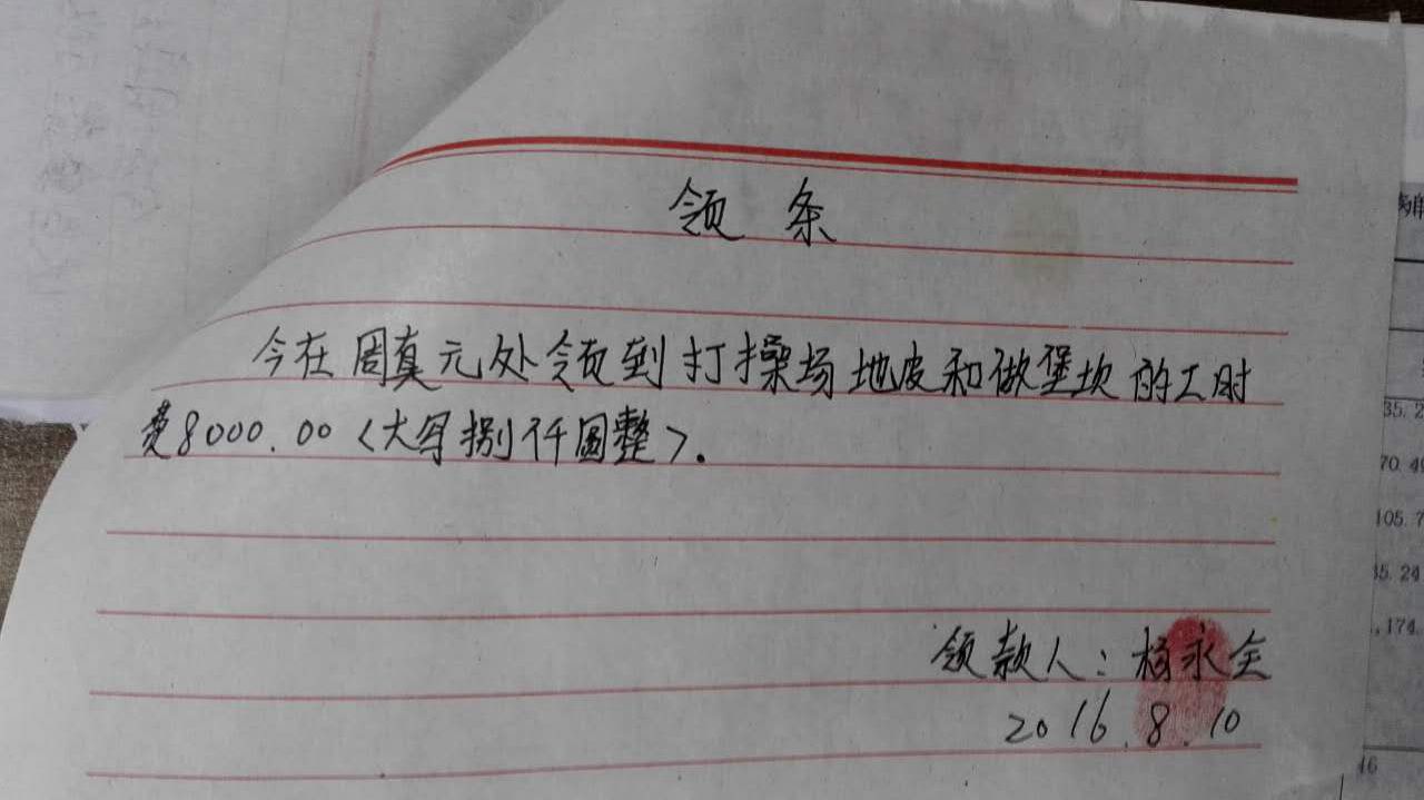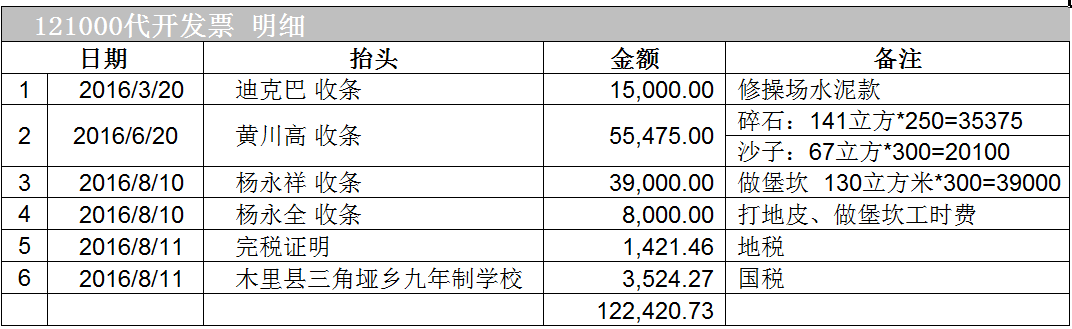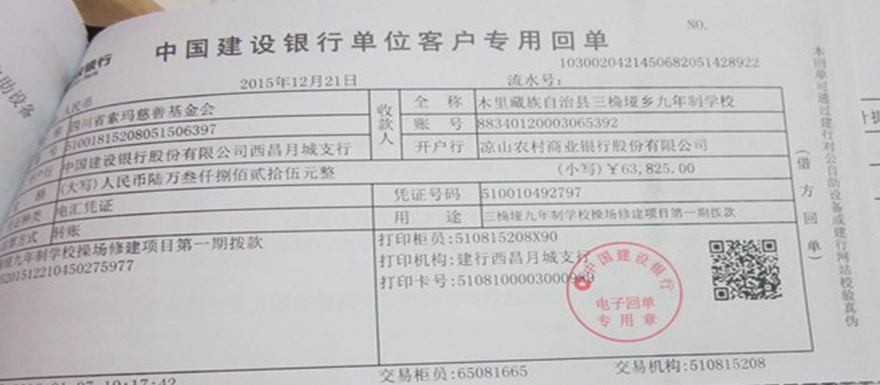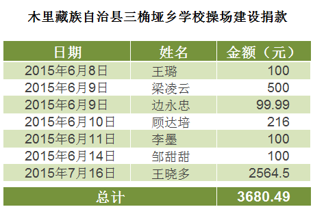 截至2016年8月15日,修建操场所需款项: 127605元,已全部汇给校方