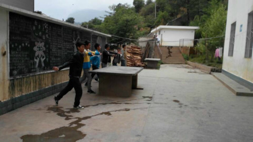 木里县三角垭乡九年制学校就是这样一个典型,全校500多名学生没有一个完整的操场,课间操需要分地区开展。学校很多空地都是没有水泥硬化土地面,晴天一身土,雨天两脚泥。到了雨天为了学生的安全,教学楼的整洁,不得不把孩子们限制在教室内。学生们能在正规操场上跑一次步、和小伙伴们打一场球赛这样的愿望成为一种奢求。由于学校地处贫困山区,地方财政无力帮助学校改善硬件设施,这一状况一直无法改变。
