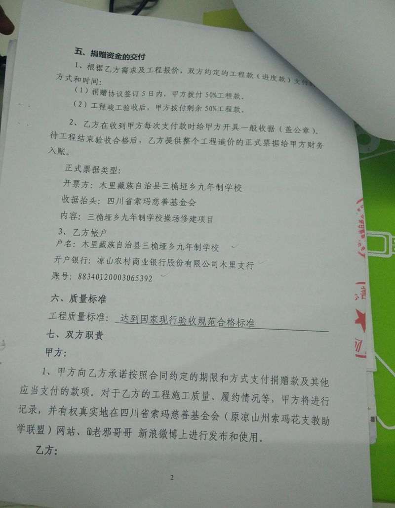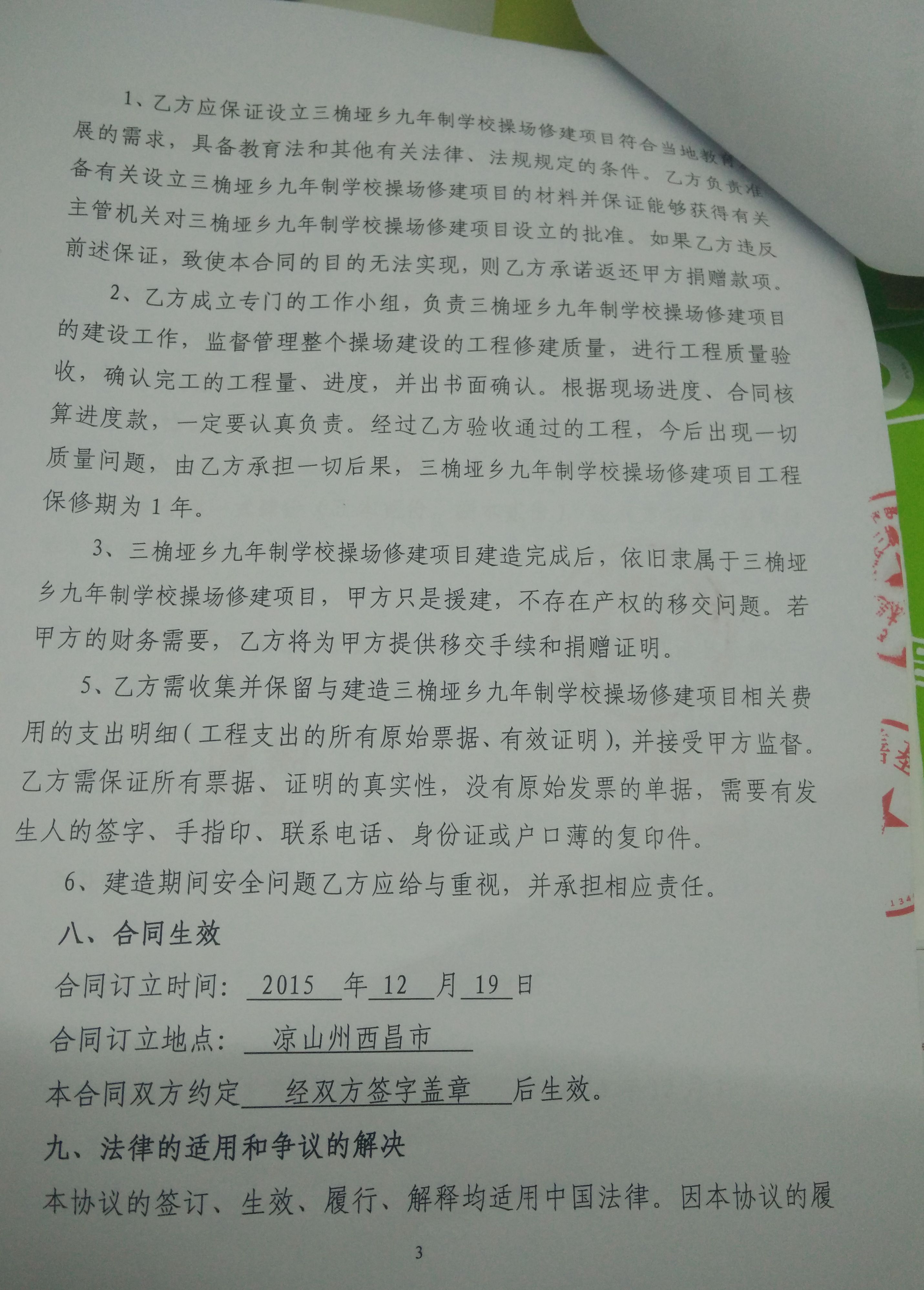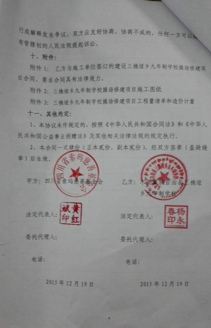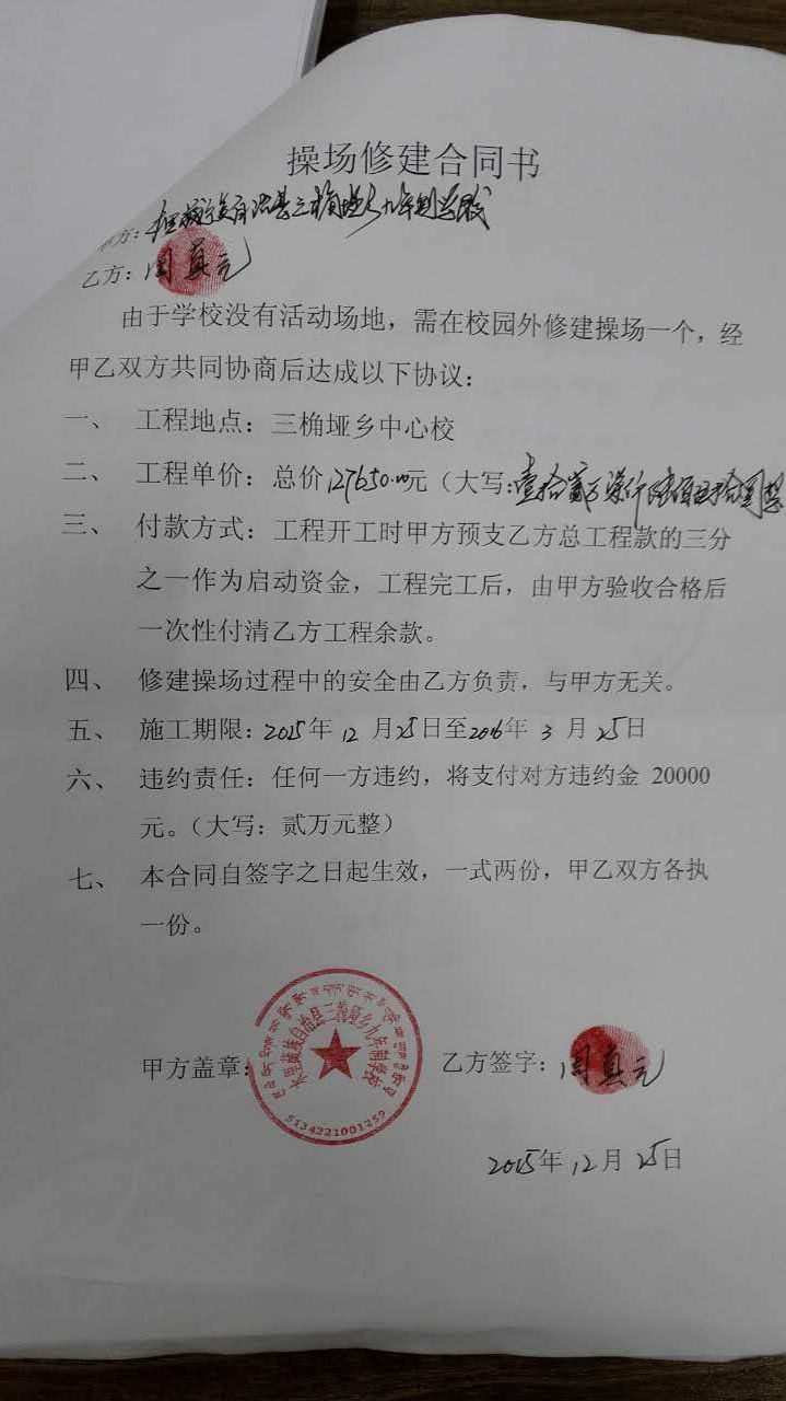 2015年12月25日 学校与承建方签署操场修建合同