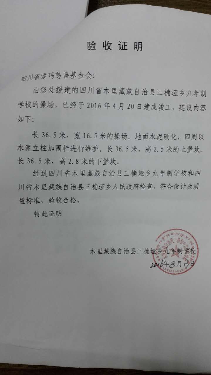 因地处藏区高海拔,高寒地带,霜冻时间比较长,交通又不方便,导致施工周期较长。经过120多天的施工,三角桠操场终于顺利完工,并交付学校使用。