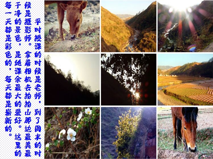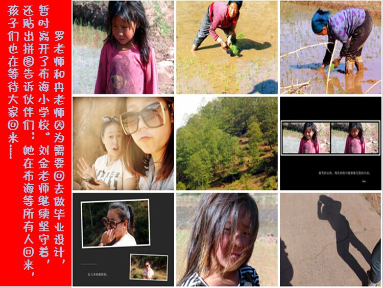 刘金,来自重庆的90后大女孩,从到的第一天起,就表现出了勇敢、自信、坚强的品质,甚至有点“汉子”!她说:“我来到这里不是想要别的什么,只是想跟孩子们在一起。”教学之外,刘金还特别喜欢摄影,孩子们和山里的花花草草在她的镜头下,都具有一种独特的美。